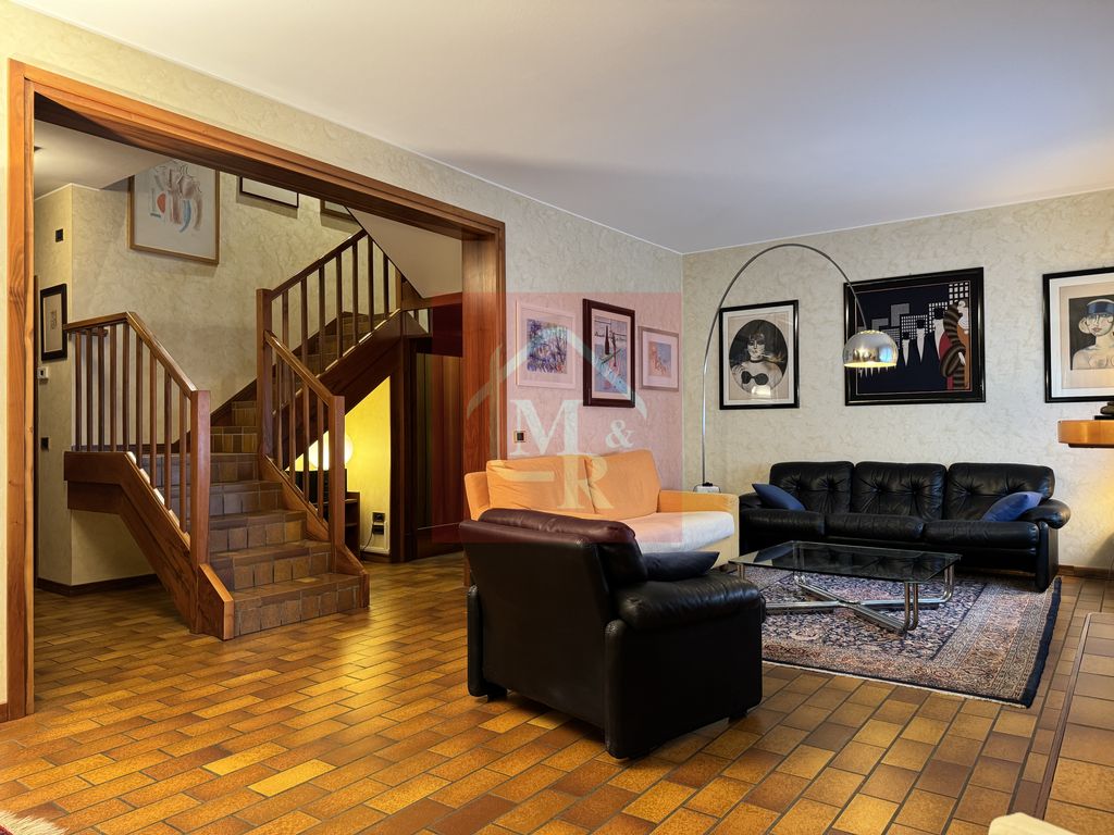 Fa da cornice a questa bellissima casa un grande giardino piantumato, completo di irrigazione automatica e robot tagliaerba.